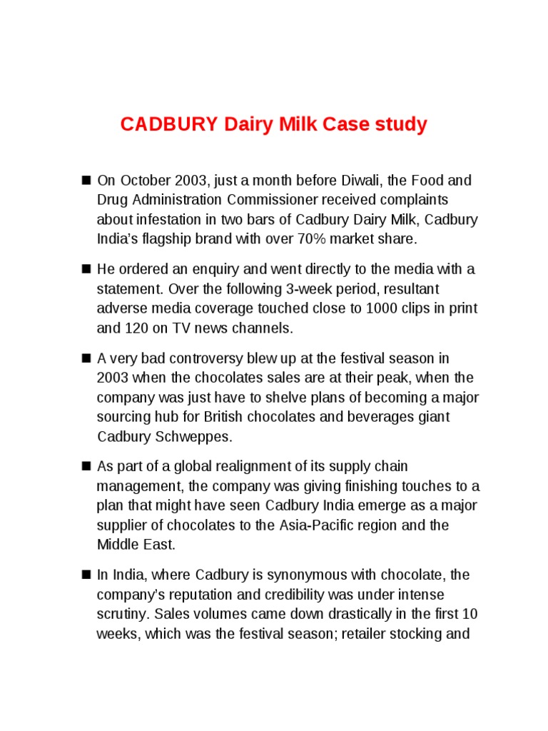 Hi Everyone Hope Your Sunday Is Going Great Enjoy Reading This Pr In Crisis Case Study How Cadbury S Won The Battle Of Public Relations 4 You A Guide To - On october 2003, just a month before diwali, the food and drug administration commissioner received complaints about infestation in two bars of cadbury dairy milk, cadbury indias flagship brand with.
