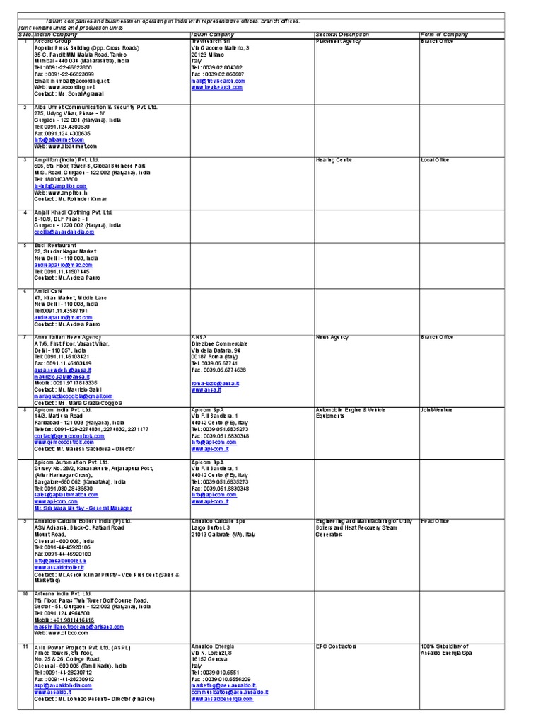 List Of Italian Companies In Chennai List Of Italian Companies In Chennai : As an advanced economy the country also has the sixth worldwide.