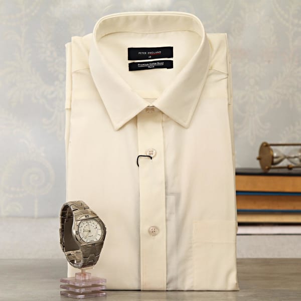 Peter England Shirts Chennai : Peter england white checks cotton shirt.