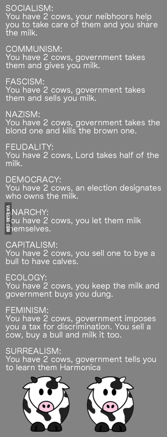Politics Explained By Cows / You keep one and give one to your neighbor.