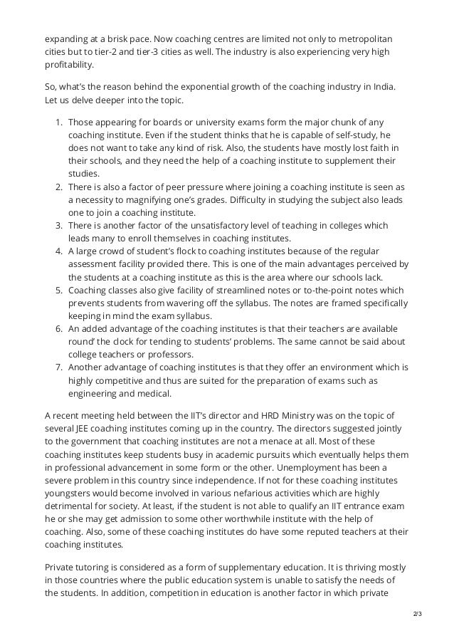 The Growth Of Coaching Institutes In India Case Study - The current size of private coaching industry in india is about $23.7 billion and likely to touch $40 billion by 2015.