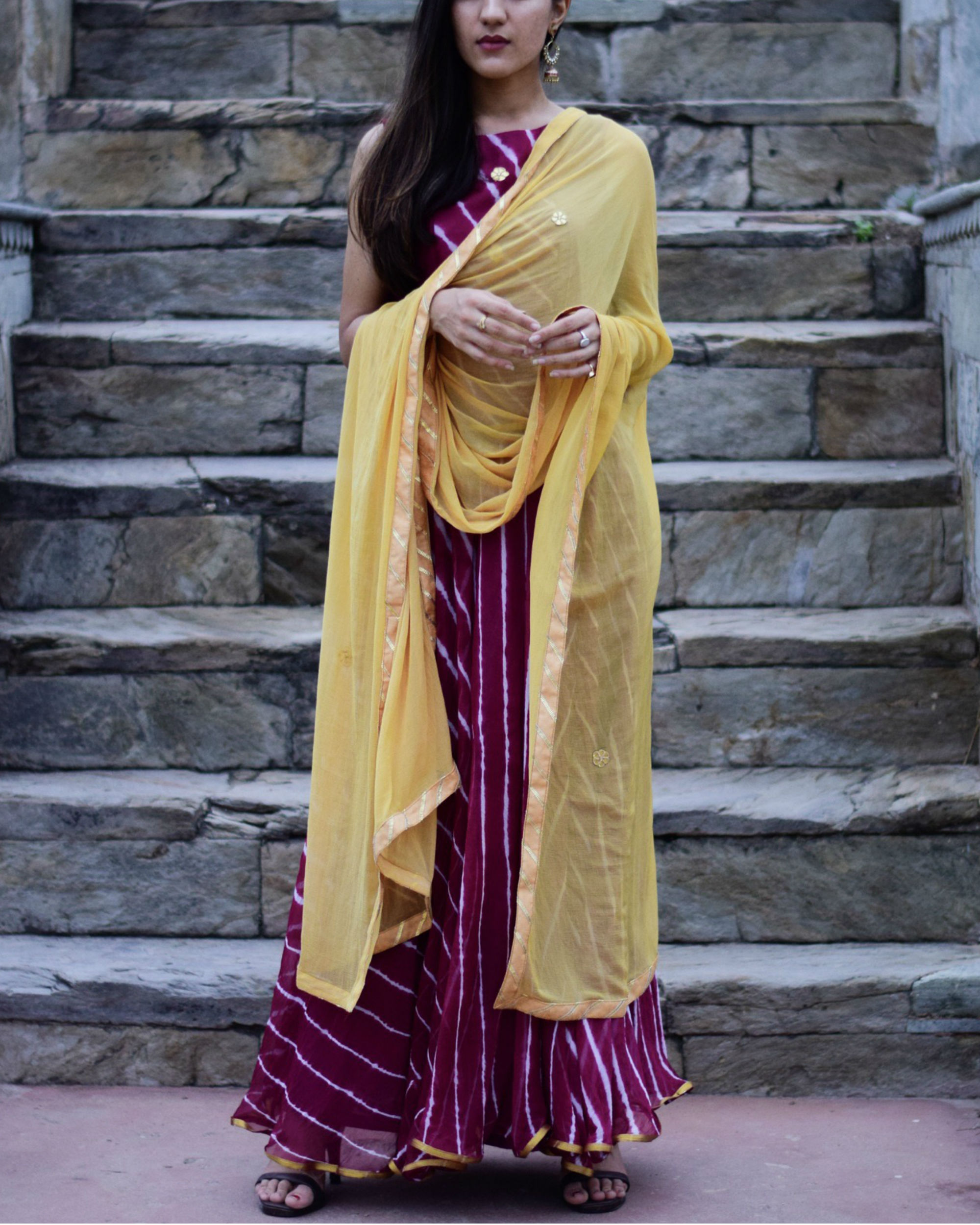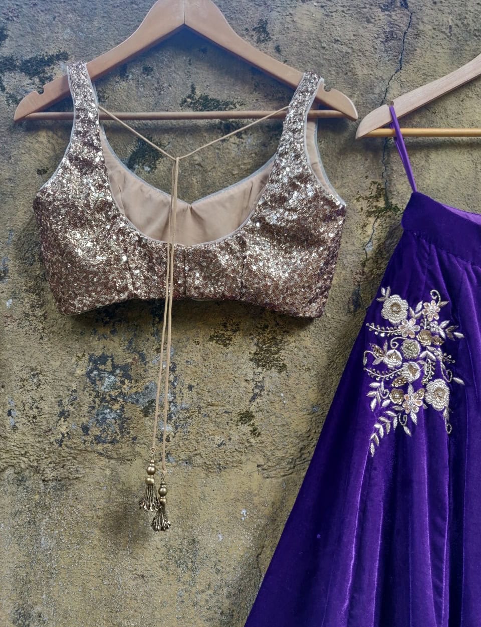 Purple And Golden Lehenga Purple And Golden Lehenga / Lehenga set details lehenga choli consists of three parts lehenga (bottom wear), choli (upper wear) and also dupatta.