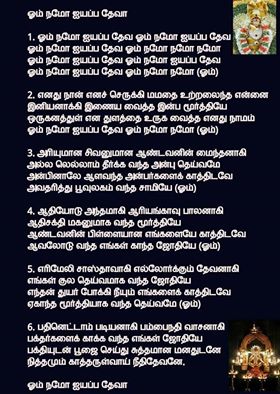 Tamil Devotional Songs Lyrics In English - To lord ayyappan or iyappa.