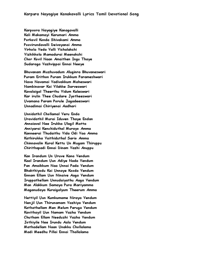 Tamil Bhajan Lyrics In English / Harivarasanam is a lord ayyappa song sung by k.j.yesudas.this video contains lord ayyappa devotional song with lyrics in.
