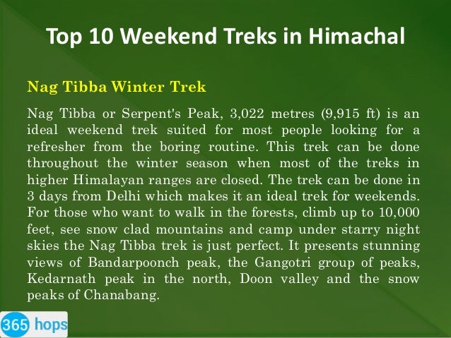 Top 10 Treks In Himachal Top 10 Treks In Himachal - Treks for beginners like dayara bugyal, mukta top, kedarkantha, are great to do all year round, except in monsoon.