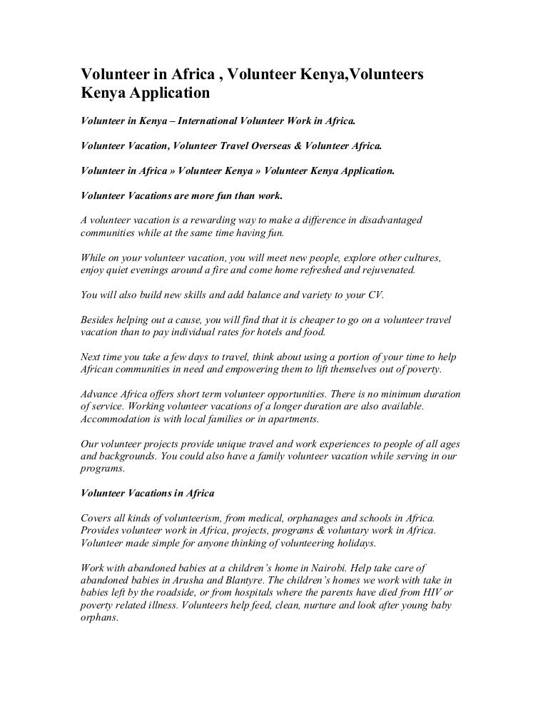 Volunteer In Africa Volunteer Kenya Volunteers Kenya Application - Volunteering as the idea of serving society is as old an idea as society.