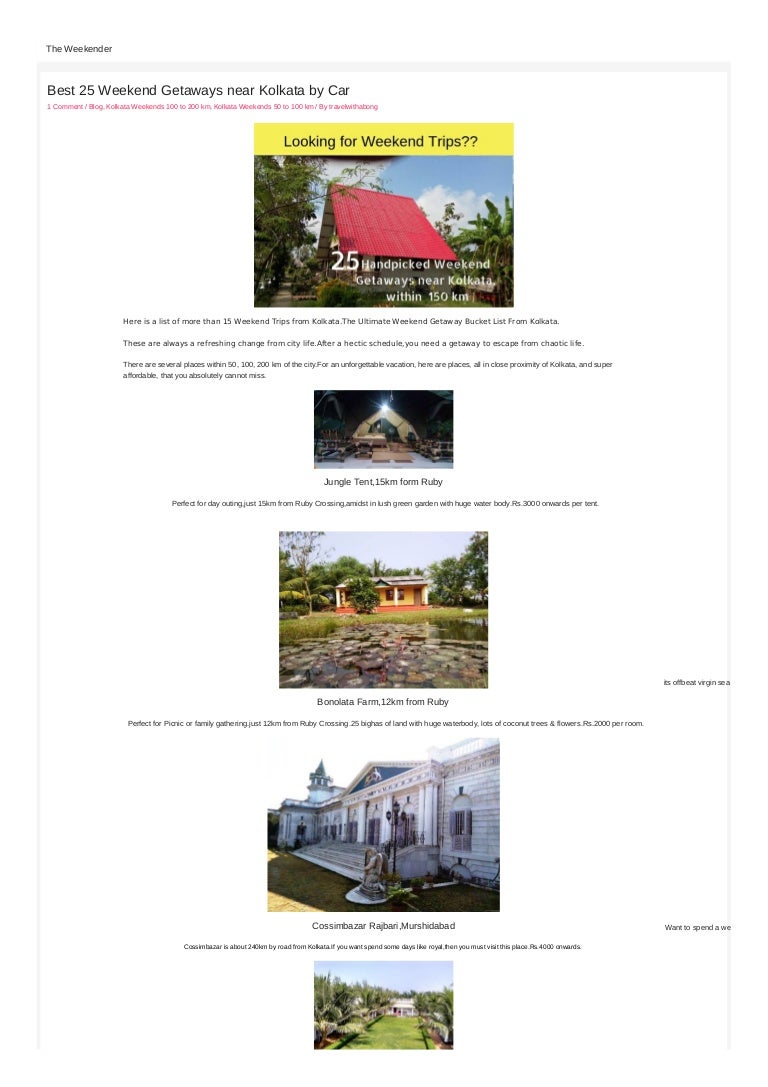 Weekend Destinations Near Kolkata Within 50 Kms Weekend Destinations Near Kolkata Within 50 Kms - Everybody deserves a relaxing weekend after a taxing week.